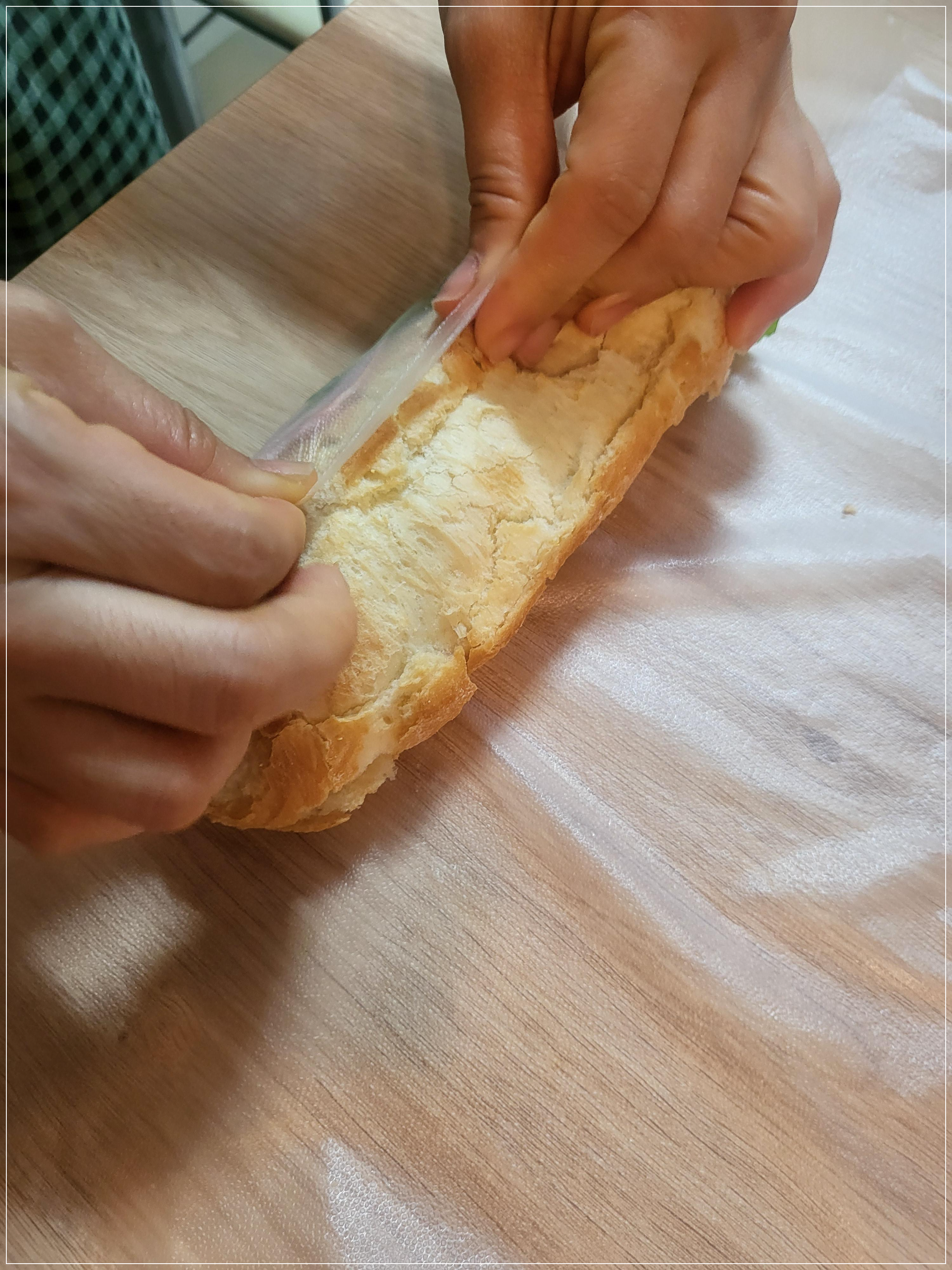 반미 빵은 냉동으로 배송되었기 때문에 에어프라이에 155도에 5분 정도 구워주었어요. 겉은 바삭 속은 촉촉해요.