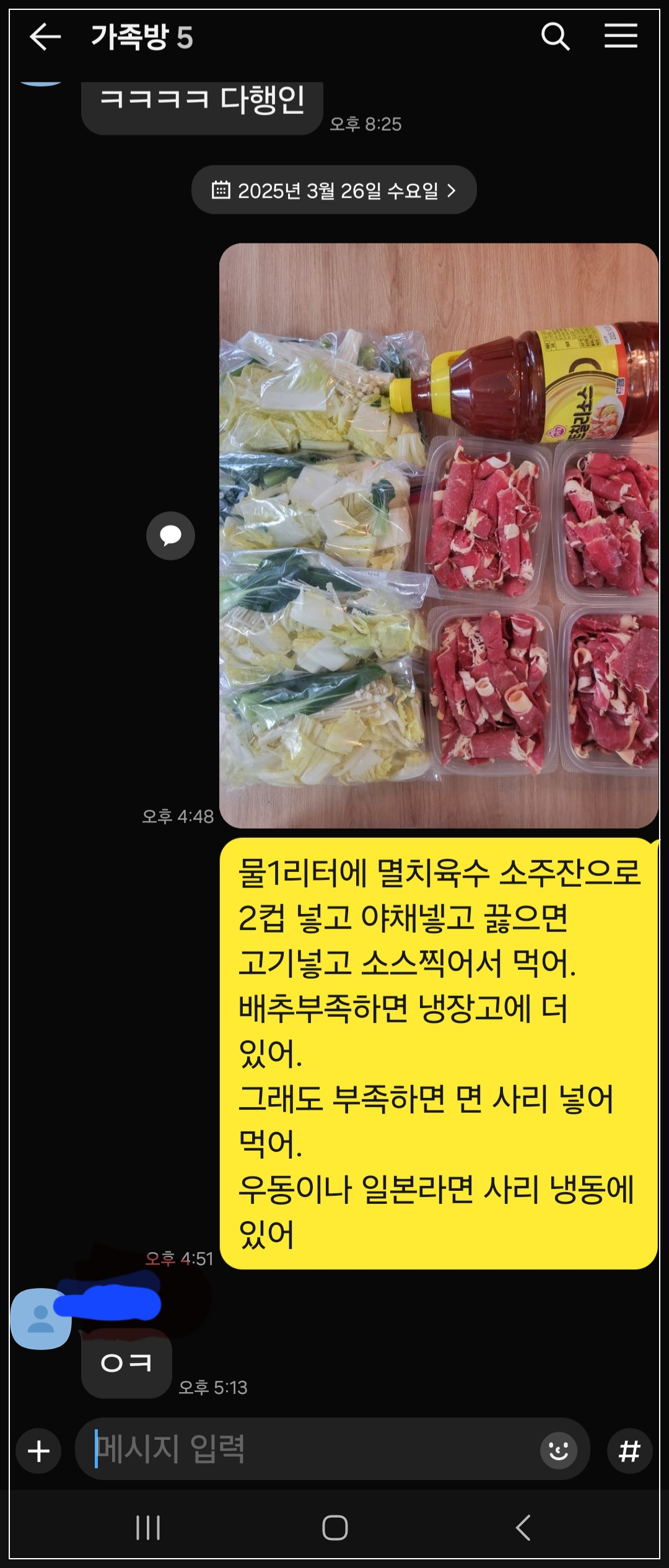 아이들이 잘 챙겨먹을 수 있도록 레시피를 단톡방에 남겨줘요.