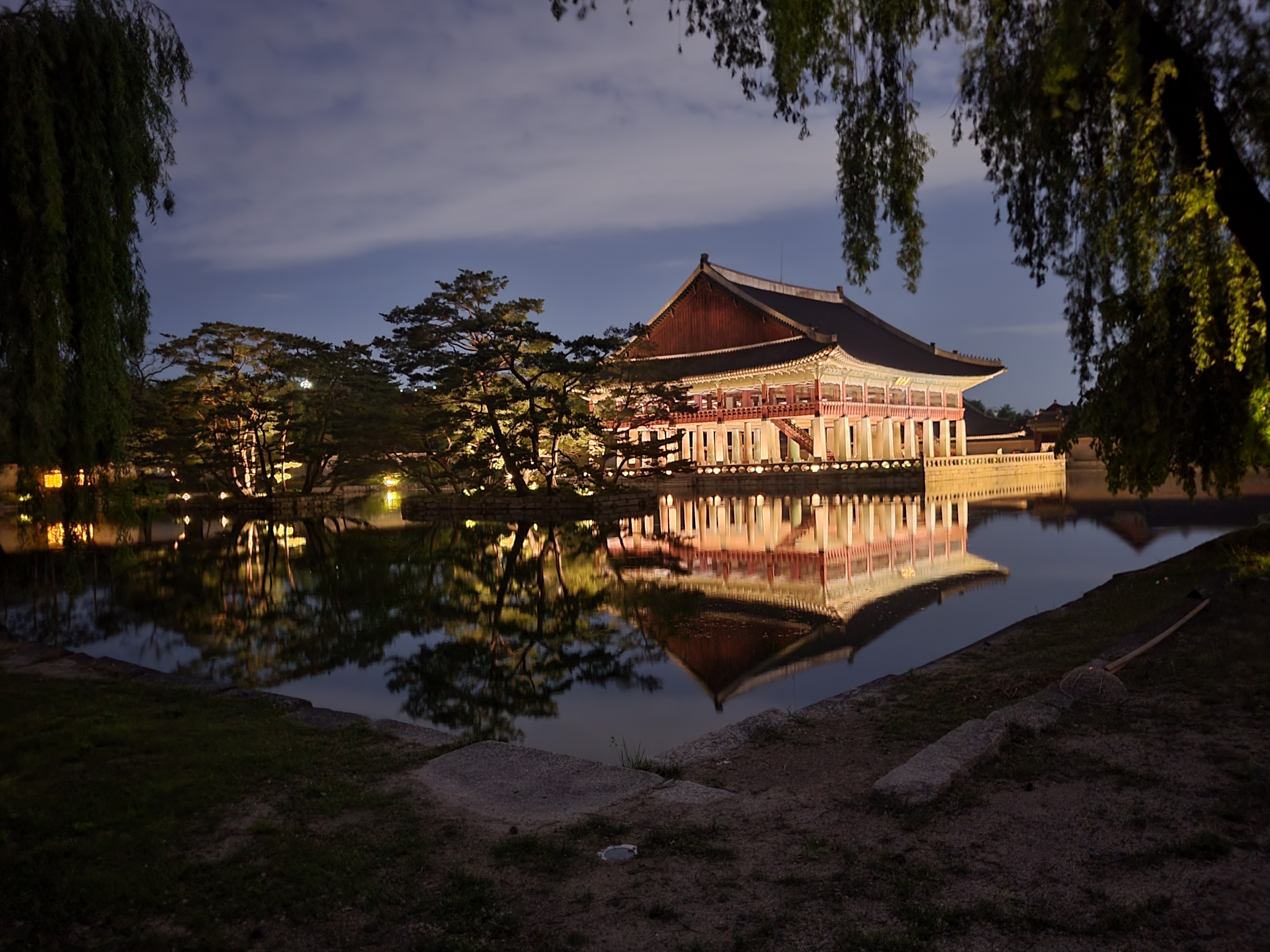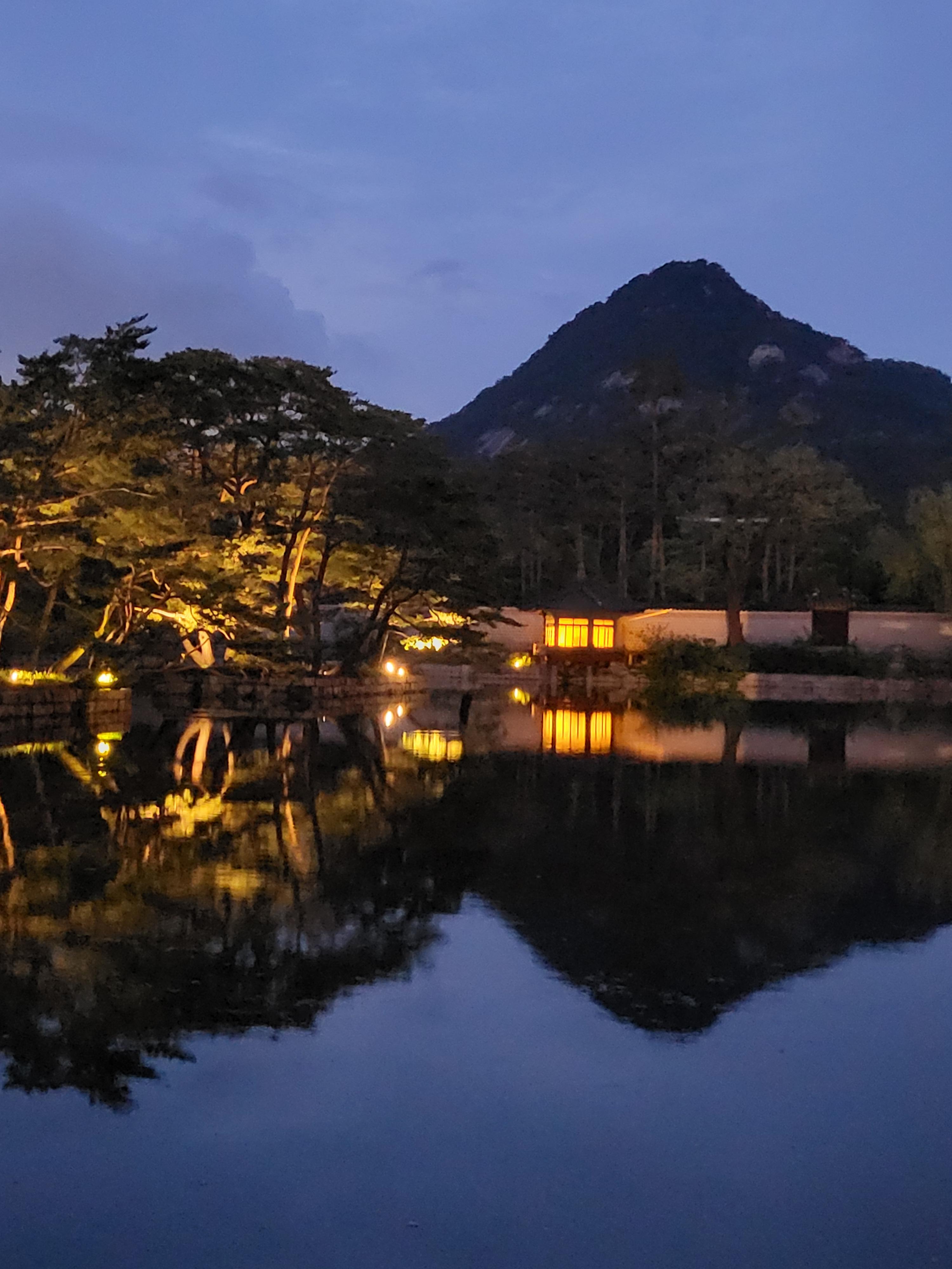 조명을 받은 경회루와 물에 비친 경회루가 사진을 찍는 것마다 작품이 되네요.