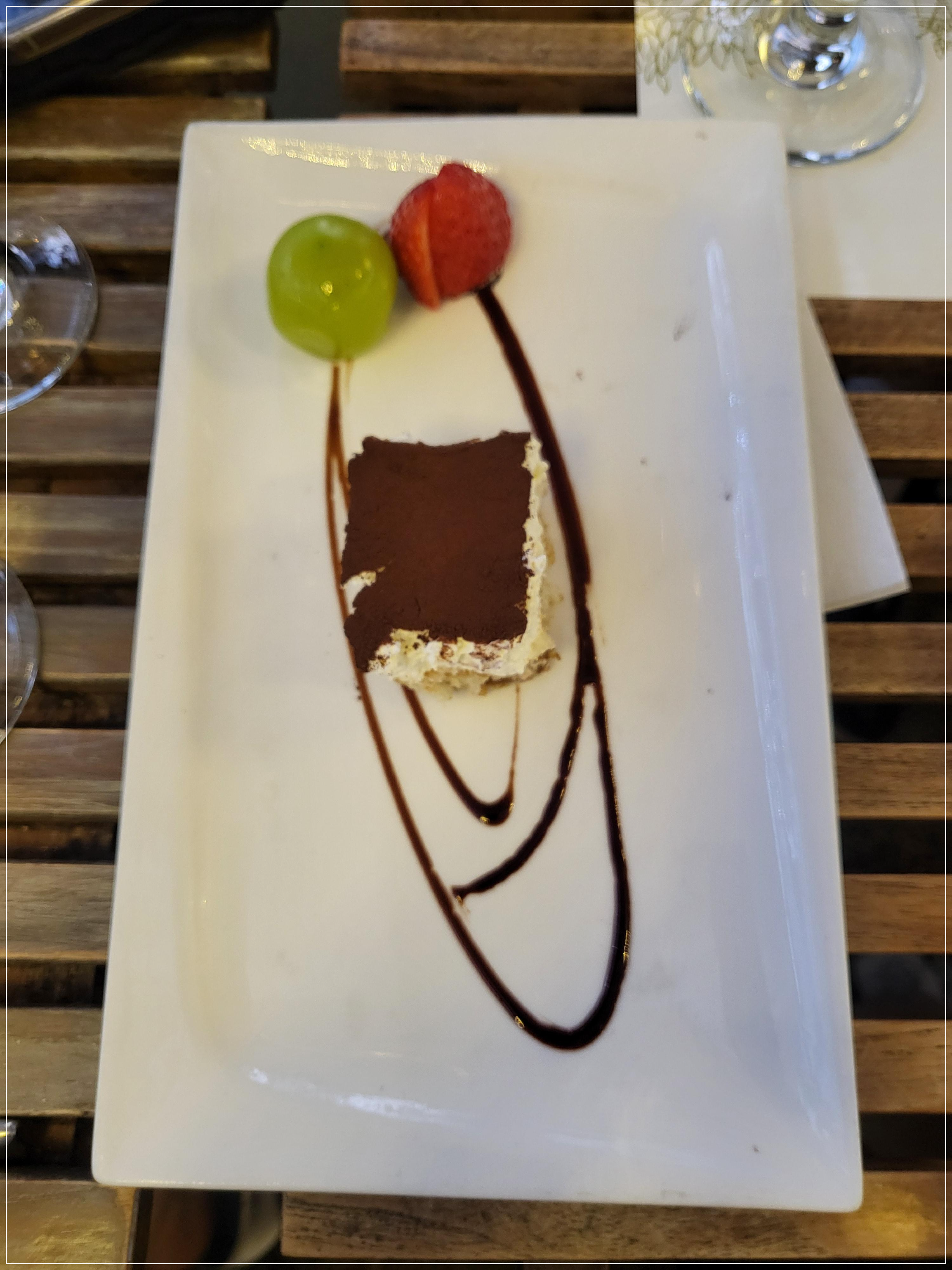 먹으면서 테이블 한쪽에 리뷰를 하면 에이드를 주신다고 적혀있어서 얼른 리뷰를 하고 보여드렸더니 티라미슈를 주신다고 하네요. 탄산이 먹고 싶었는데...