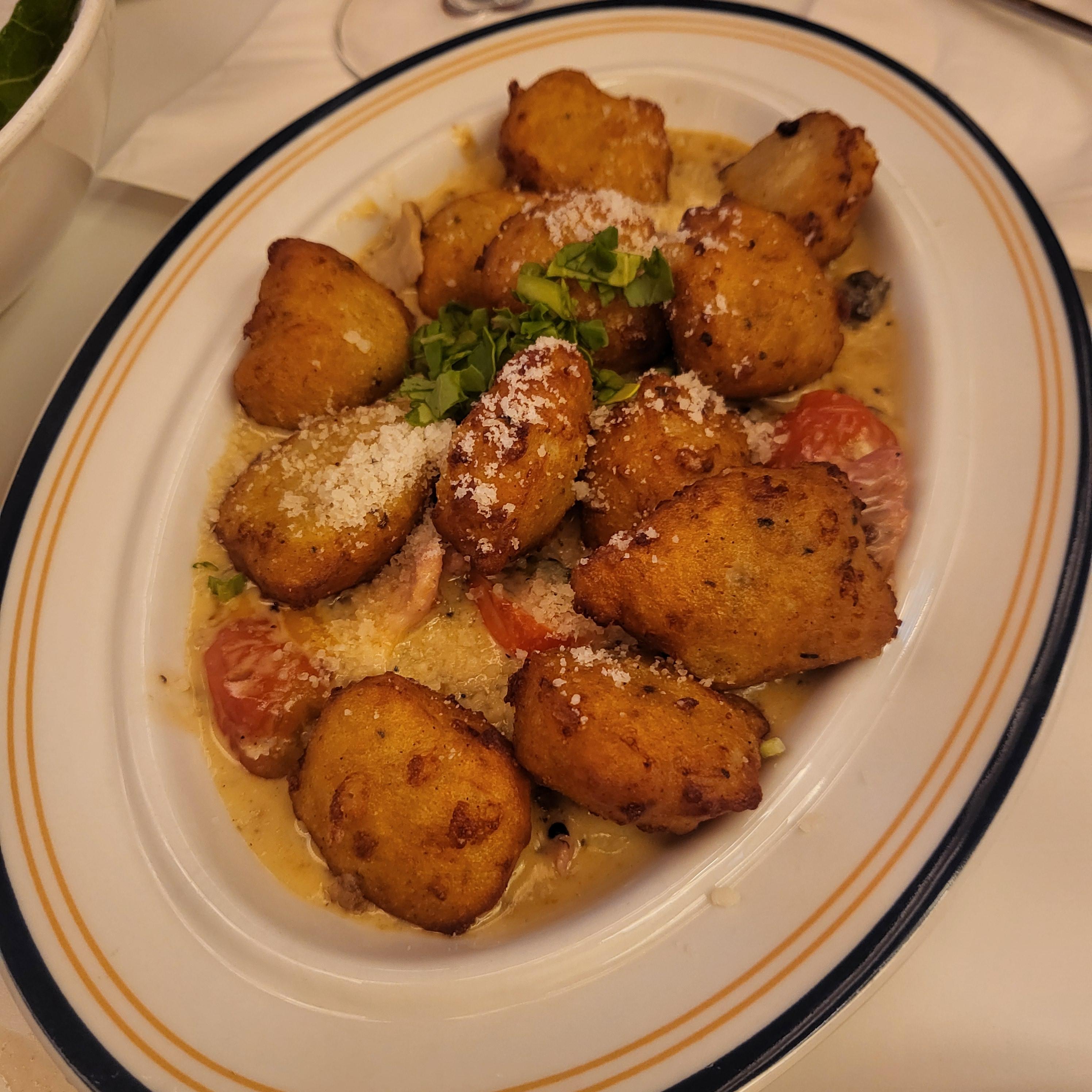 봉심식당의 뇨끼는 특히 감자 뇨끼 메뉴로 많은 호평을 받고 있습니다. 감자를 곱게 으깨 만든 듯한 뇨끼는 입 안에서 사르르 녹는 식감이 일품입니다. 일반적인 밀가루 뇨끼보다 감자 비율이 높은 듯해 훨씬 부드럽고 부담이 없습니다. 소스로는 크림소스나 토마토소스 중 선택할 수 있는데, 특히 크림소스는 치즈와 우유의 밸런스가 완벽해 짠맛 없이 고소하고 진한 풍미를 느낄 수 있습니다. 곁들여 나오는 구운 채소나 허브도 정성스럽게 준비되어 있어 전체적인 완성도를 높여줍니다. 혼자 방문해도 부담 없는 양과 구성이며, 양이 많은 편이라 남녀노소 누구나 만족할 만한 메뉴입니다. 이탈리안 요리를 잘 모르는 사람도 뇨끼만큼은 한 번에 반하게 될 수밖에 없는 맛으로, 봉심식당의 인기 비결 중 하나입니다.