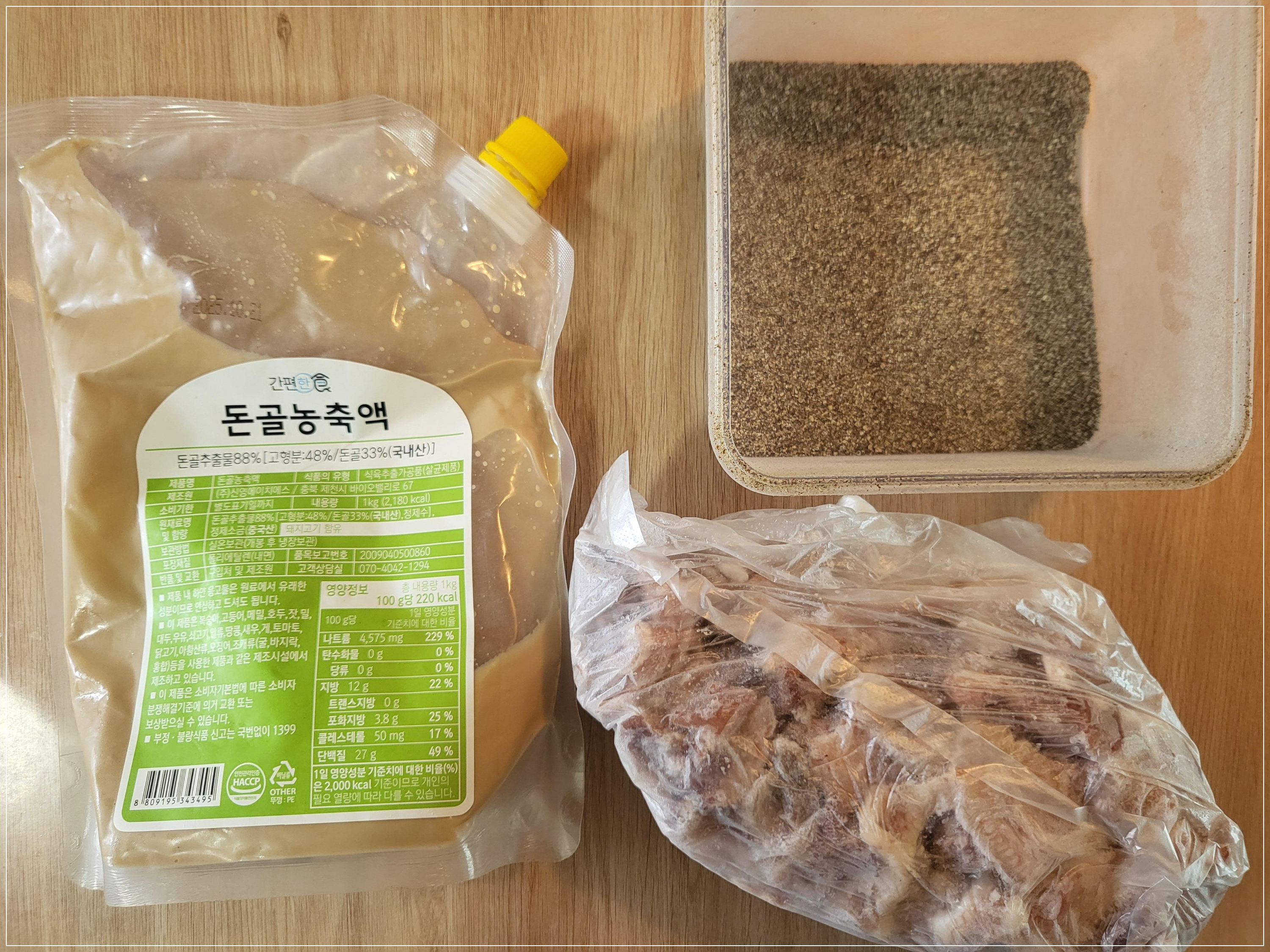 ≫ 물 1.5리터, 머릿고기, 들깨가루, 청양고추2개, 돈골농축액 소주컵1.7 분량