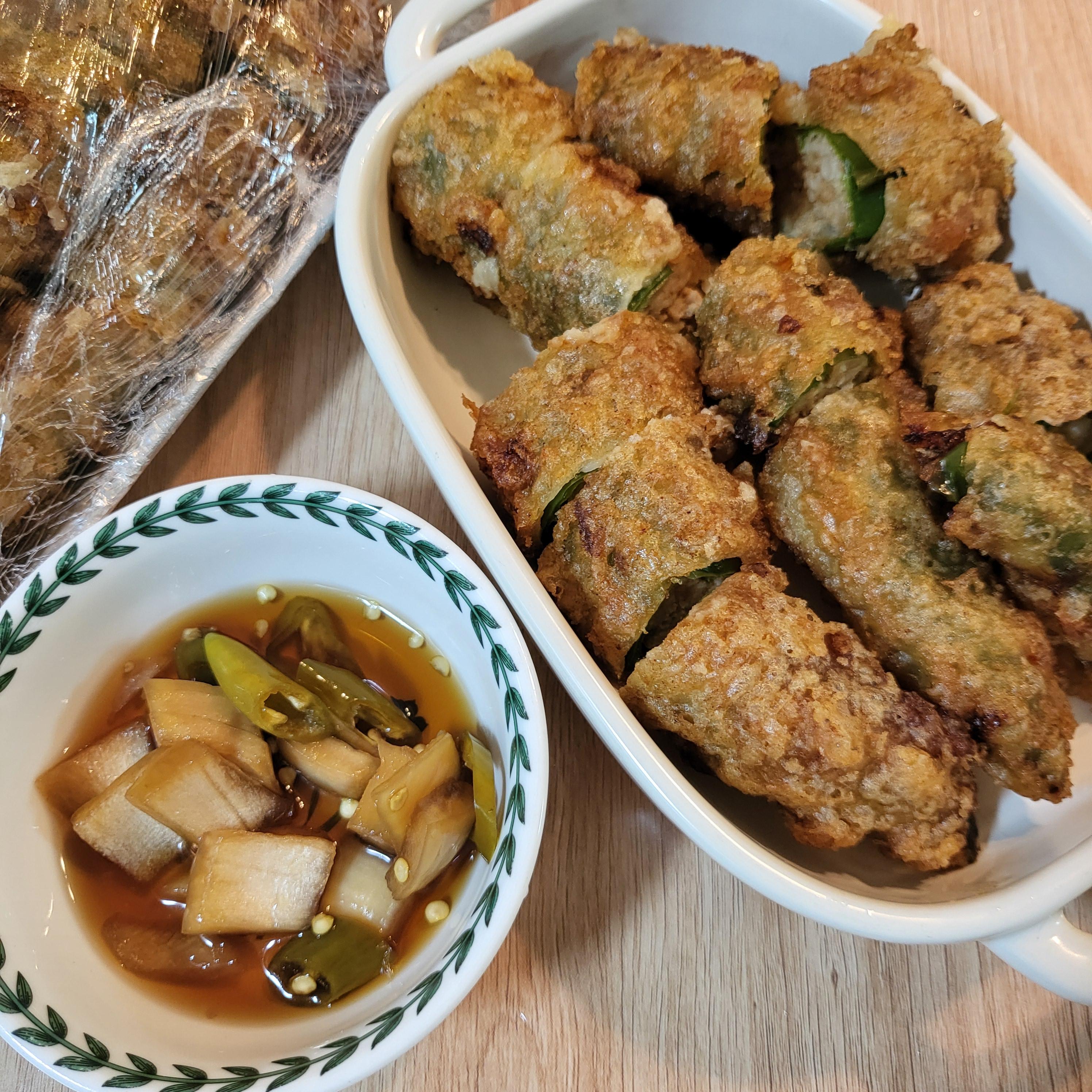 흥부전놀부전의 대표 메뉴는 단연 고추전입니다. 일반적인 전집의 고추전은 얇고 간이 강한 경우가 많지만, 이곳의 고추전은 재료 본연의 맛을 살리면서도 적당한 두께와 바삭함을 유지해 많은 이들의 입맛을 사로잡고 있습니다. 특히, 고추 속에 꽉 찬 고기소는 부드럽고 촉촉해 씹는 맛이 살아 있고, 겉은 고소한 기름 향이 가득해 술안주로 제격입니다. 매일 아침 직접 손질하는 신선한 고추와 고기를 사용하며, 튀김옷도 두껍지 않아 재료 맛이 오롯이 느껴지는 점이 차별화 요소입니다. 또한 고추전 외에도 동그랑땡, 김치전, 해물파전 등 다양한 전이 함께 제공되며, 각 메뉴마다 정성이 느껴지는 맛으로 구성되어 있어 전통 전집의 본연의 맛을 경험할 수 있습니다. 이처럼 품질 높은 고추전은 흥부전놀부전의 인기를 견인하는 핵심 메뉴로 자리잡고 있습니다.